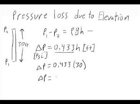 For a system, pressure drop can be calculated with engineering equations that require the type of fluid, flow rate, fluid properties, plot plan, and piping material specifications. Bernoulli's equation makes it easy to examine how energy transfers take place among elevation head, velocity head, and pressure head. In order to simplify the elevation pressure calculations on the fire ground the following formula may be used: The loss heat for the case of figure 1 corresponds to the.